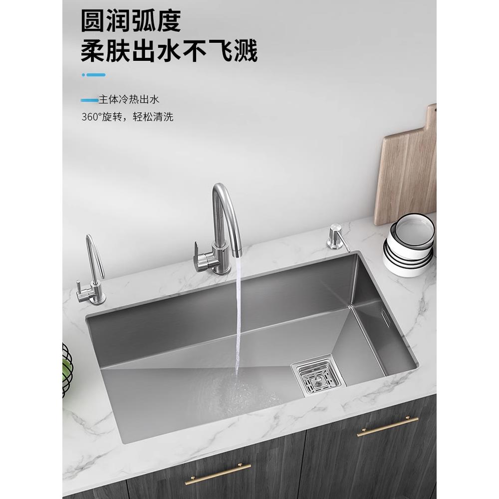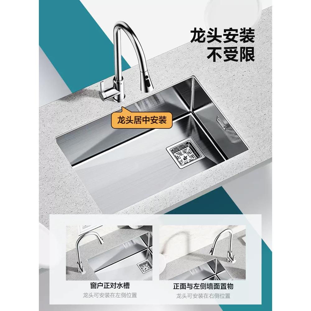 水槽厨房台面盆304不锈钢大单水槽蔬菜盆450家庭侧排水嵌入式 桌排