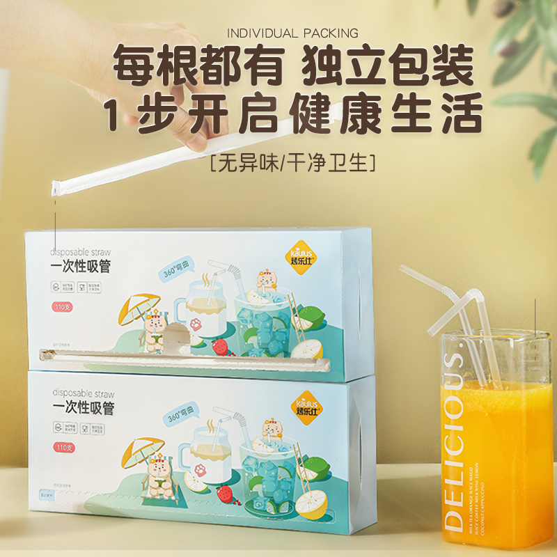 一次性磁吸吸管独立包装 食品级产妇儿童宝宝牛奶透明可弯曲吸管