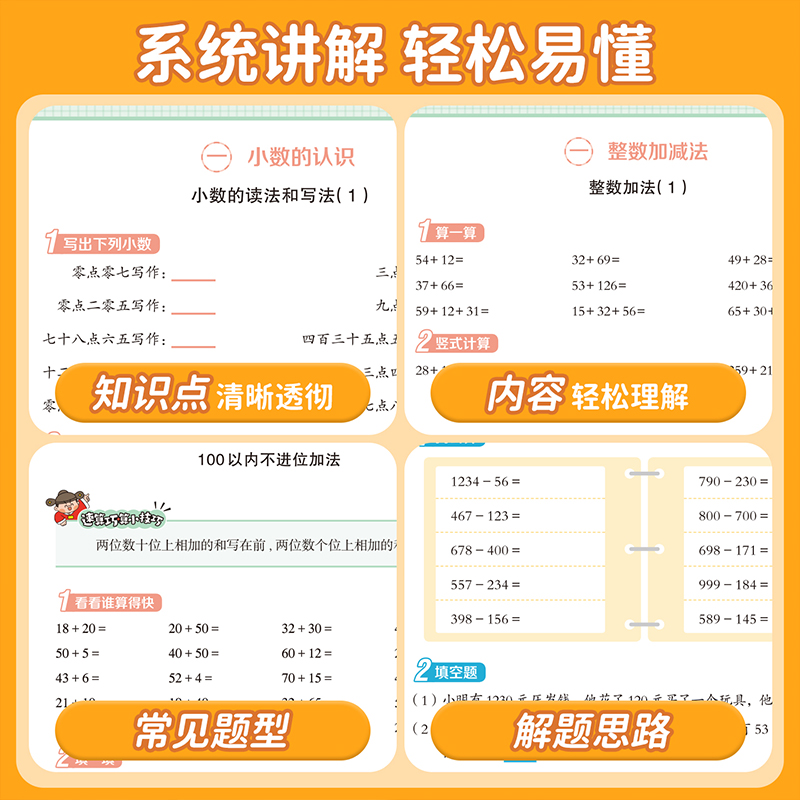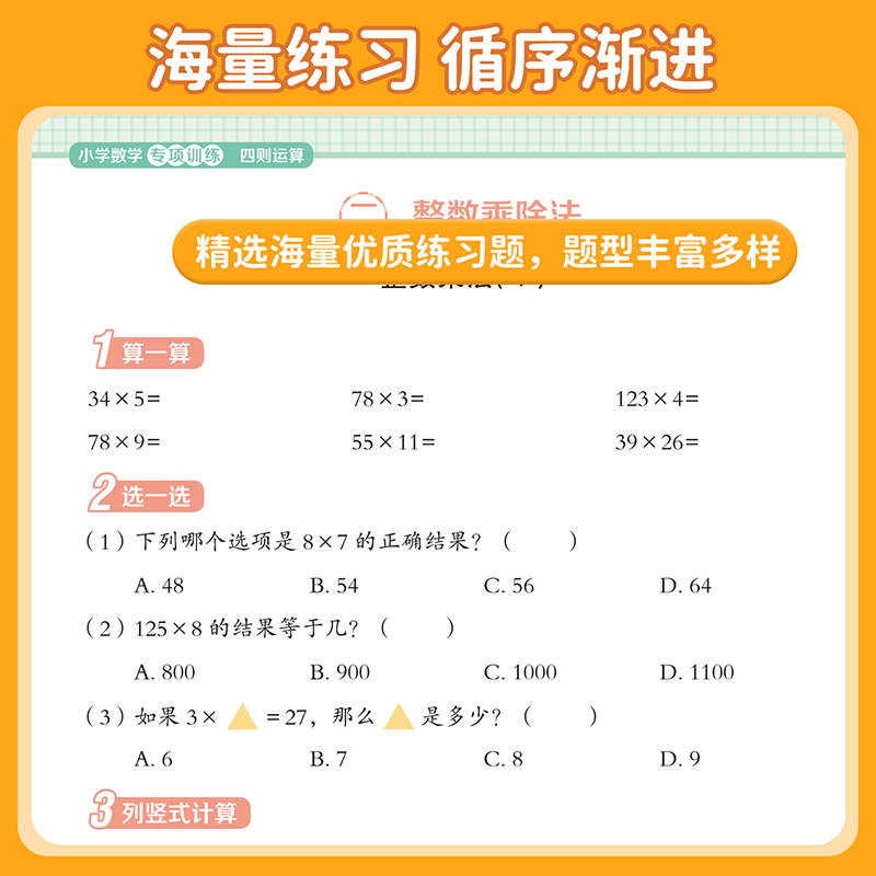 小学数学专项训练万以内加减法九九乘除法四则运算分数小数计算一二三四五六年级练习册专项练习四位数乘法口算天天练竖式 单位换算