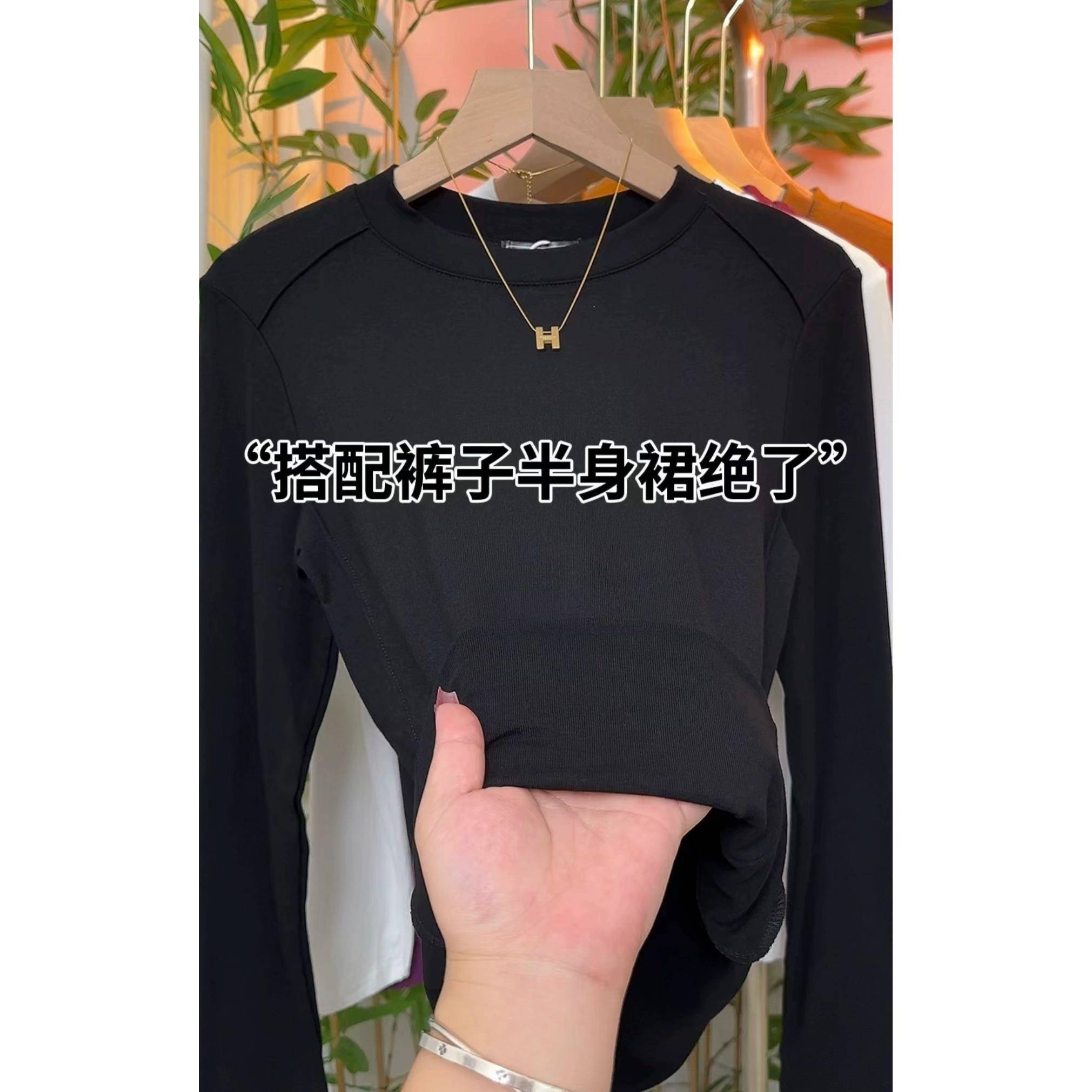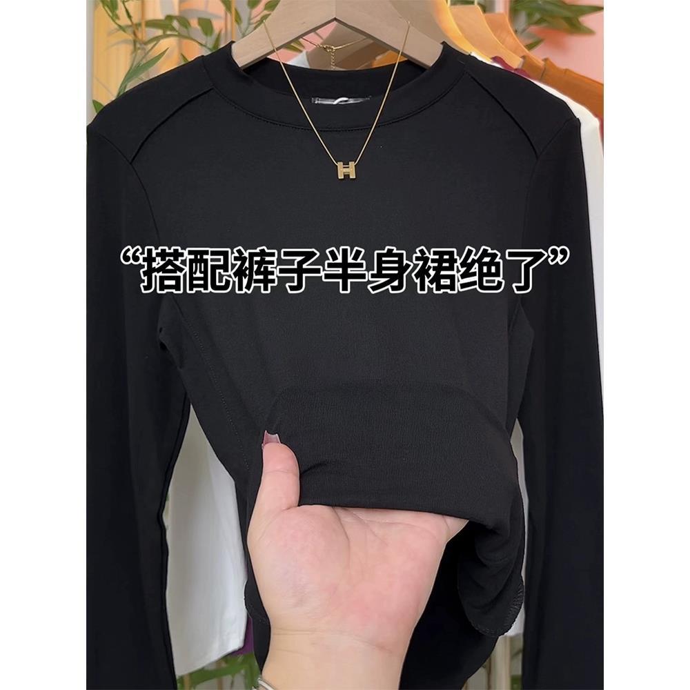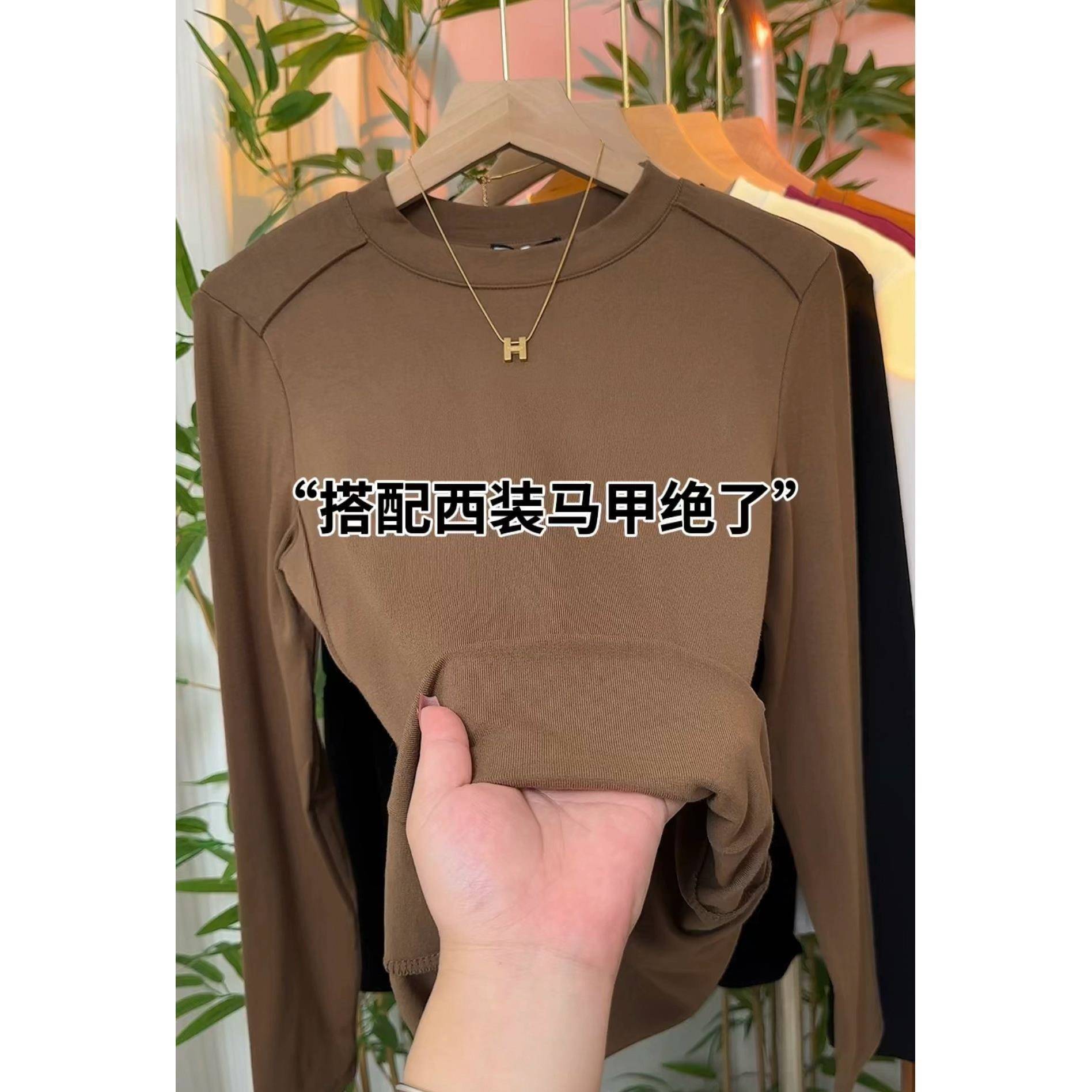 T恤内1020n 美拉德圆领加绒长袖 秋冬女士打底咖色圆领打底衫 女新款