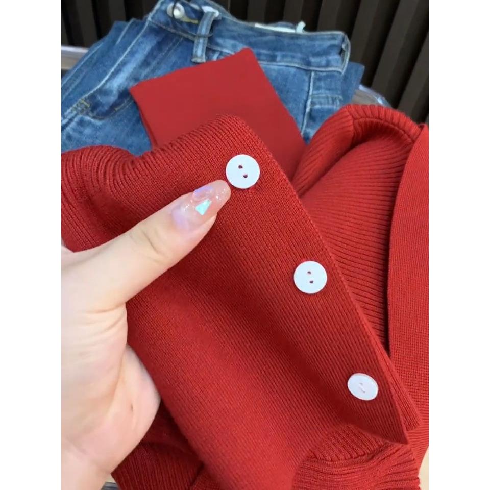 辣妹修身 设计感小众V领纯棉长袖 美式 打底衫 上衣 T恤女春秋内搭短款