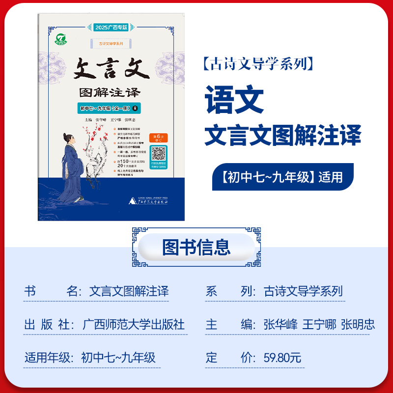 全国通用课文结构思维导图鉴赏点拨图解注释阅读理解专项突破 文言文图解注释初中语文七八九年级上下册人教版 2025广西专版 新版