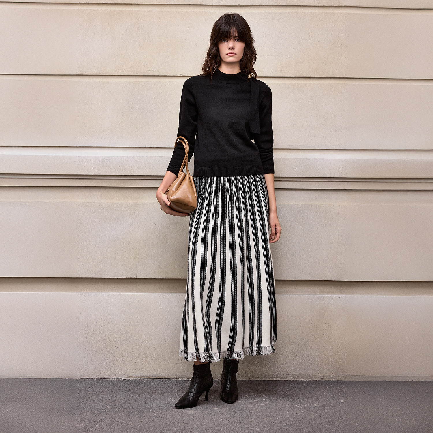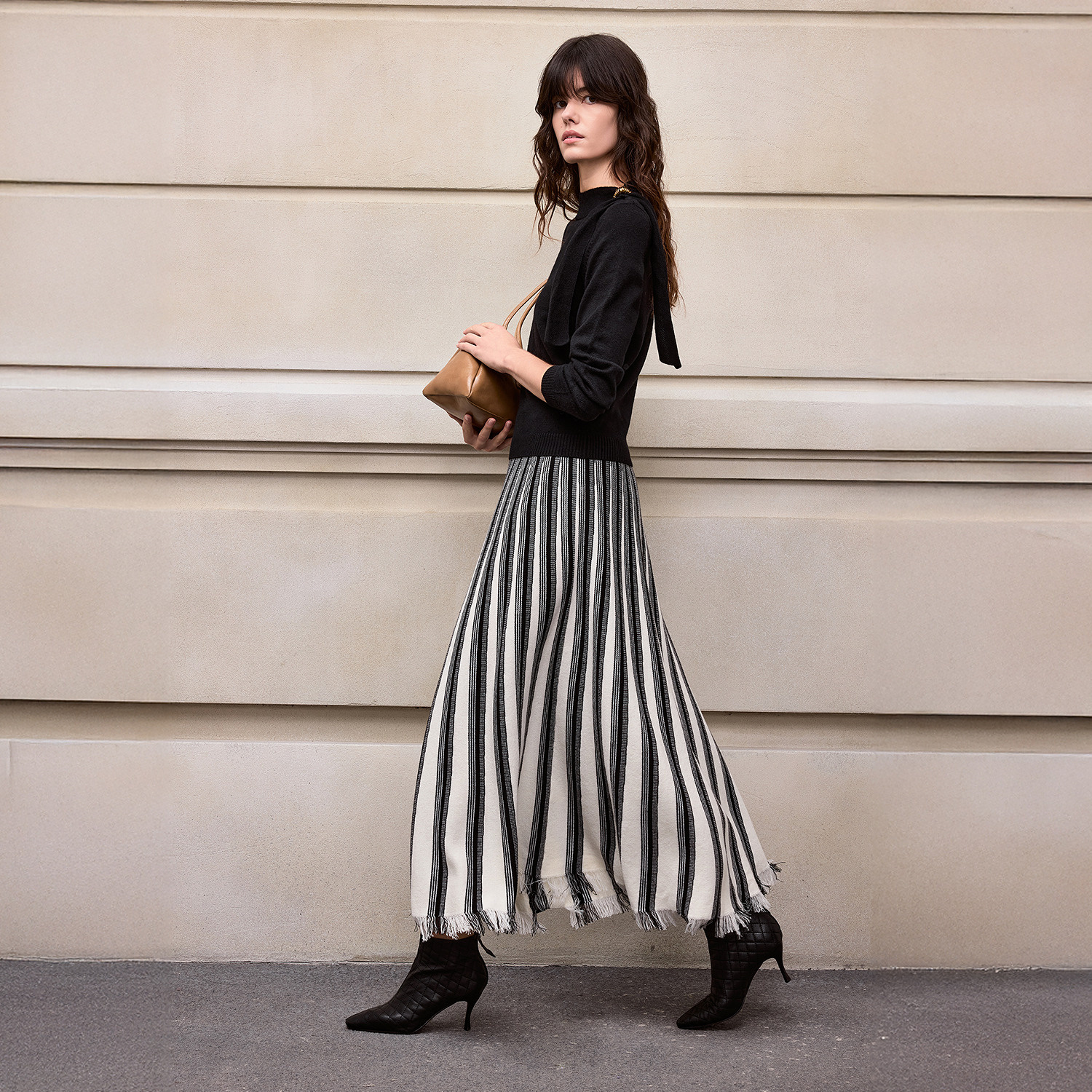 针织衫 条纹短袖 长袖 开衫 毛衣外套 RARN2025秋装 两件套圆领修身 新款