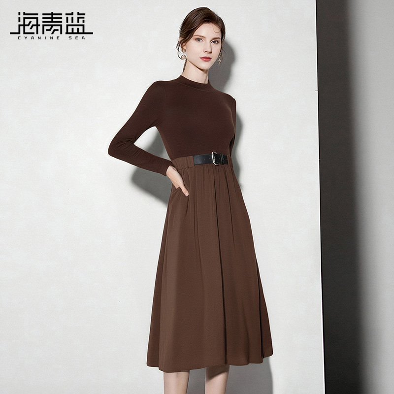 SNIDEL2025秋冬新品 露肩收腰连衣裙SWFO254179 优雅半高领泡泡袖