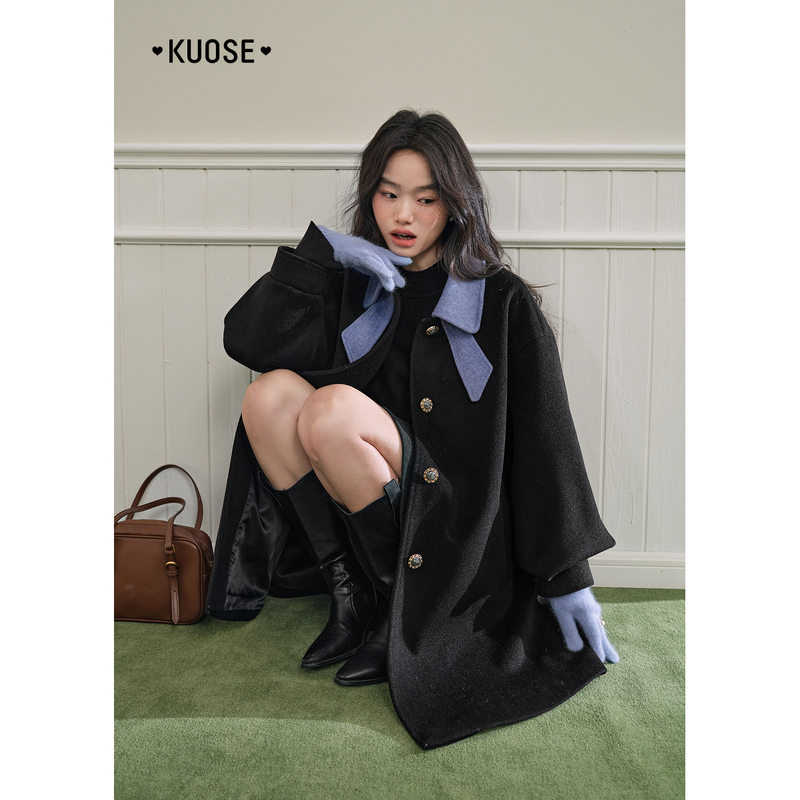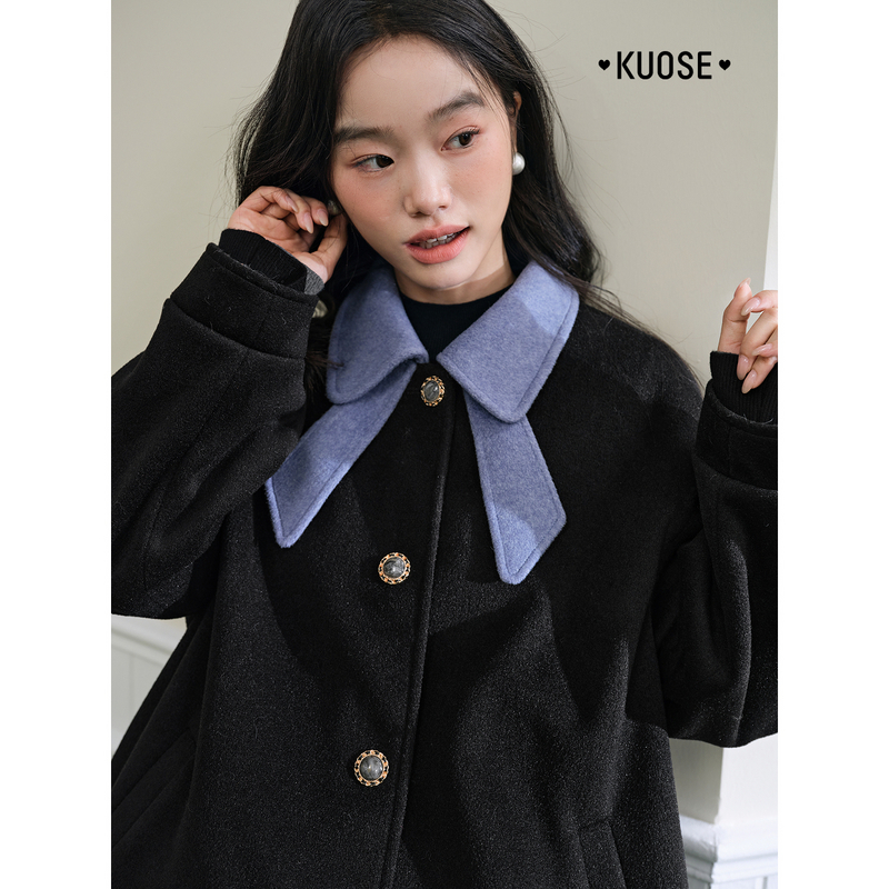 新款 2025冬季 秋水伊人优雅翻领毛呢外套 通勤大衣 100%绵羊毛