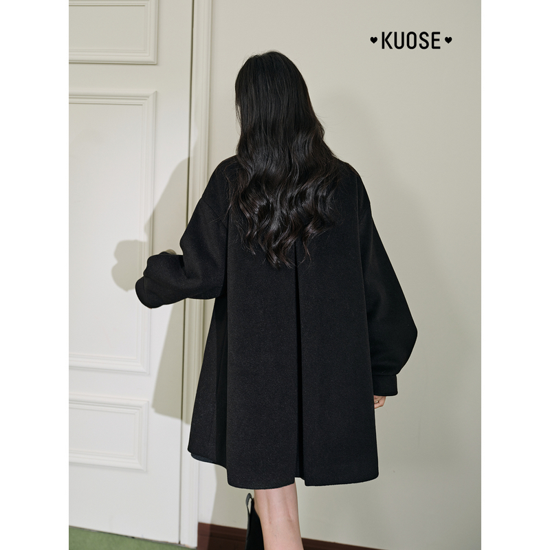 RUISHI芮时 重磅驼绒桑蚕丝羊毛慵懒两穿领毛呢大衣女秋冬外套女