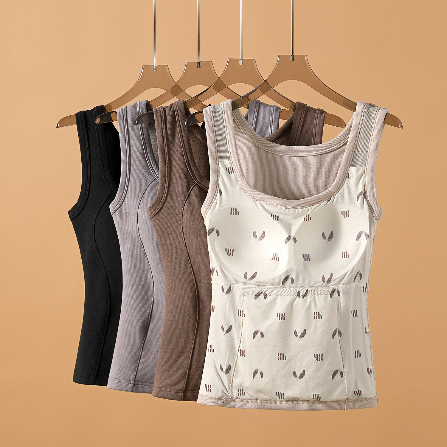秋冬外穿带胸垫运动上衣潮 内搭打底衫 白色吊带背心女修身 显瘦短款