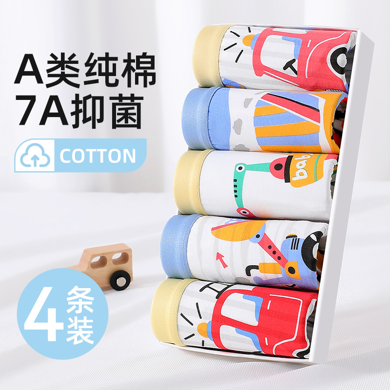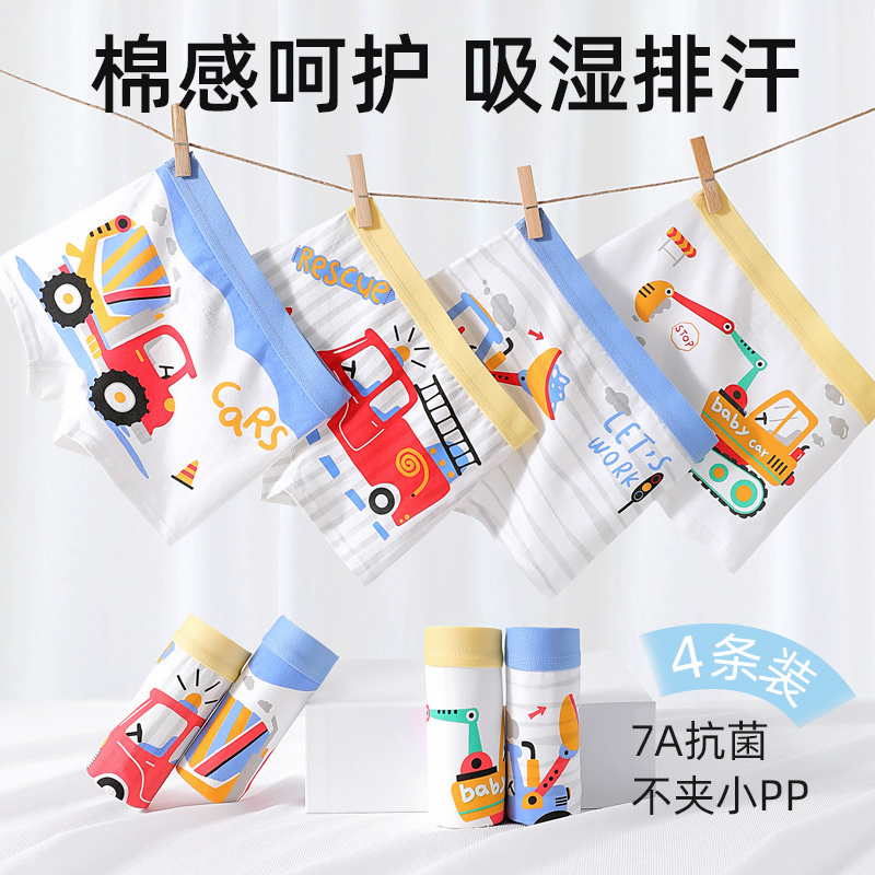 男生中腰平角四角裤 纯棉内裤 全棉时代男士 透气四角短裤 百补