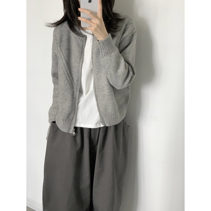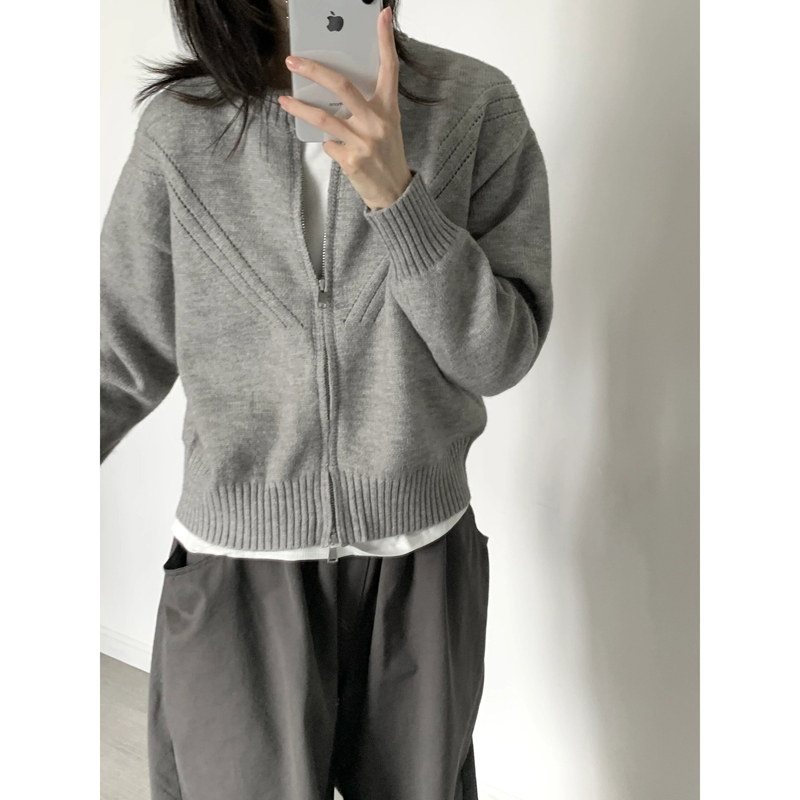 V37重磅立领双开拉链纯色毛衣男秋潮牌cleanfit高级感针织衫 外套