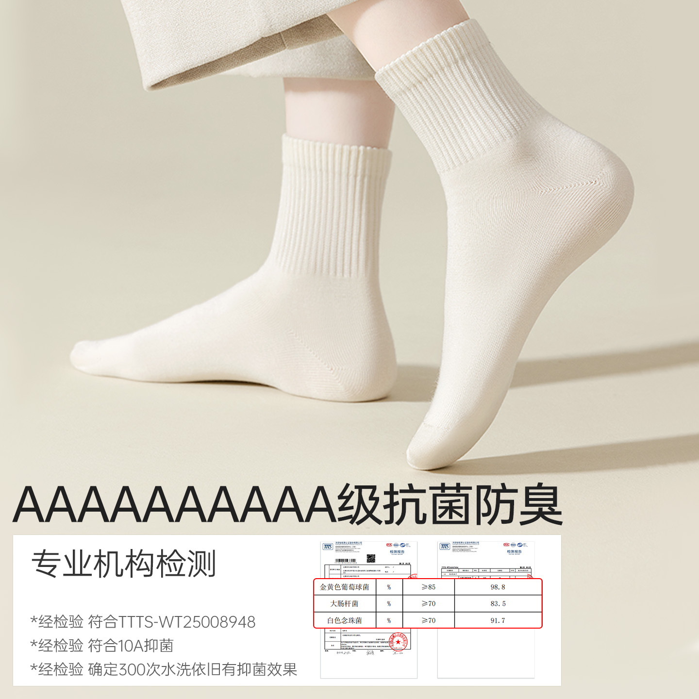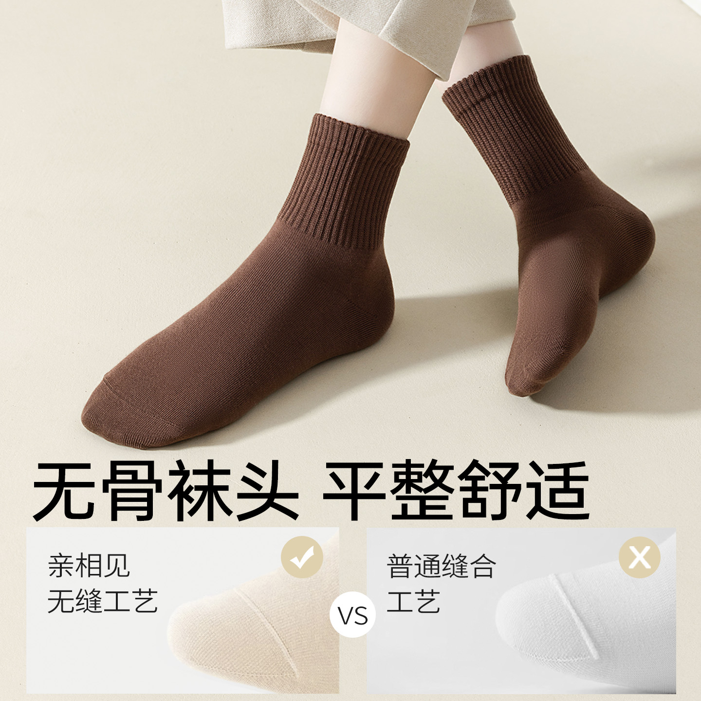亲相见袜子女纯棉防臭中筒袜秋冬季 透气吸汗抗菌女士100%棉短袜