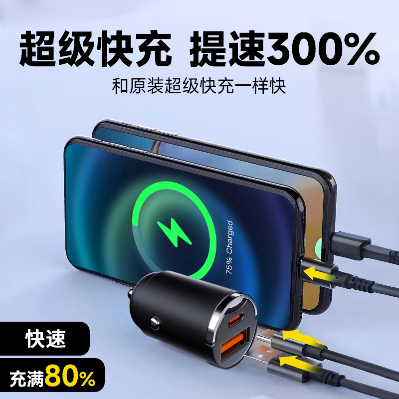 车载充电器适用于华为荣耀vivo小米oppo安卓手机超级快充点烟器头