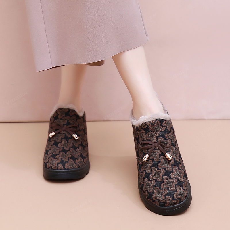 防滑软底一脚蹬中国风棉布鞋 加绒加厚保暖中老年妈妈鞋 新款 冬季
