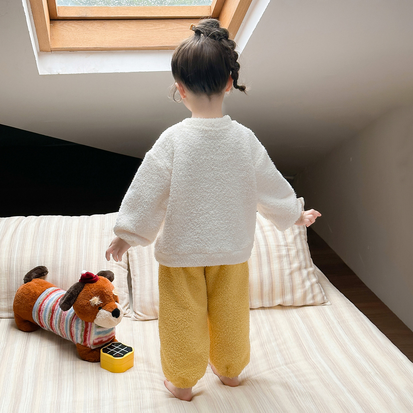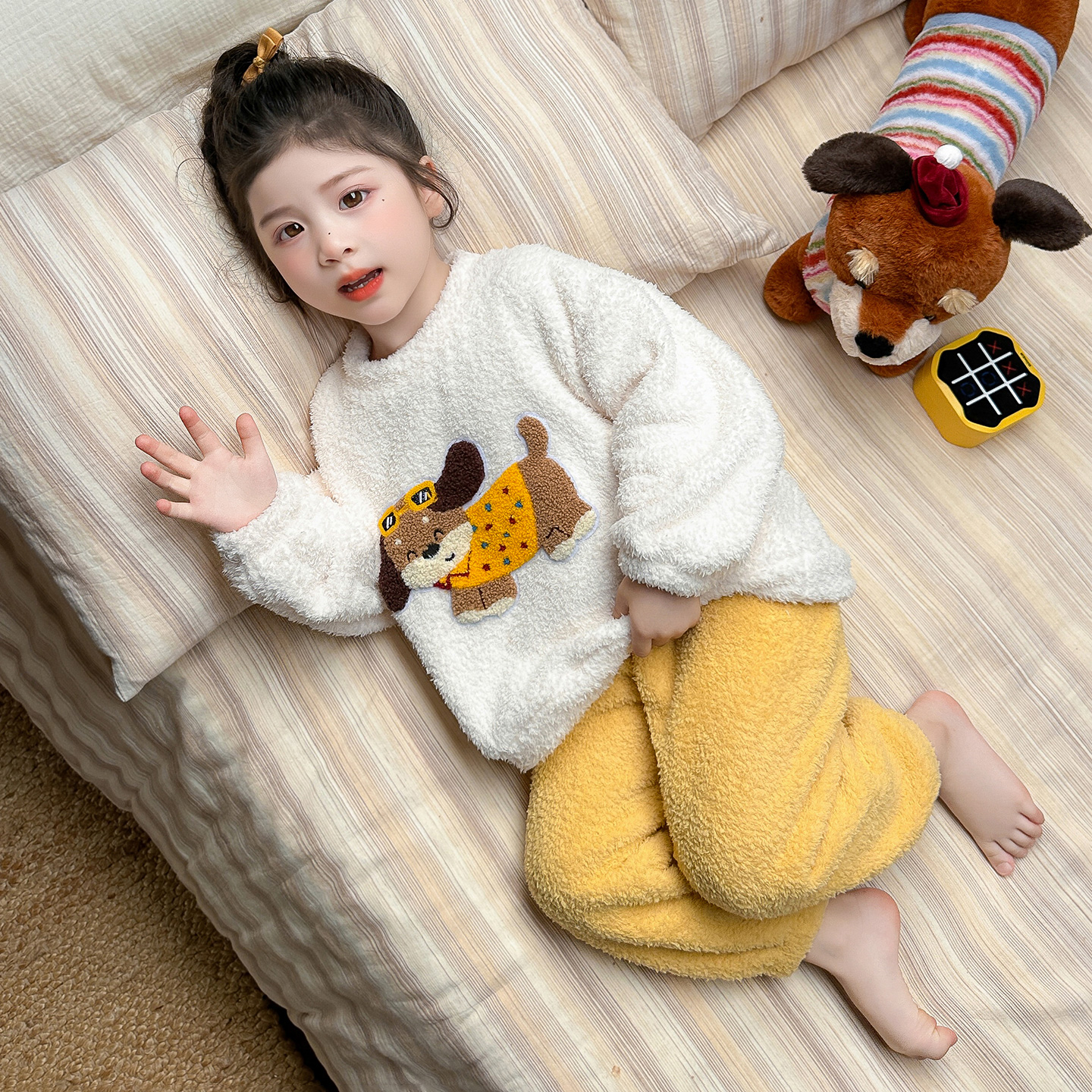 女童睡衣冬季 女宝宝保暖睡衣冬 半边绒女孩卡通小狗家居服加厚套装