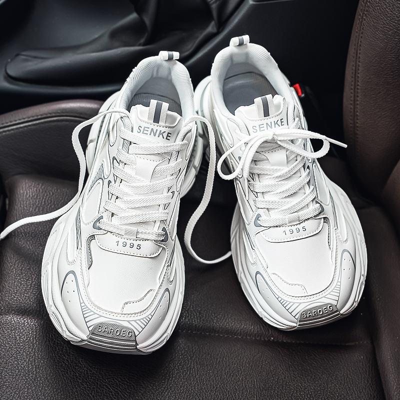 高级感皮面防滑轻便软底运动跑步休闲增高学生增高老爹鞋 男鞋 秋季