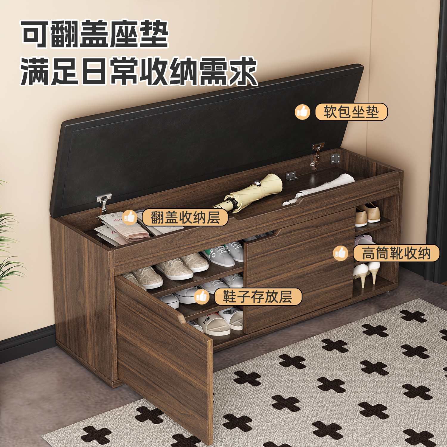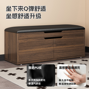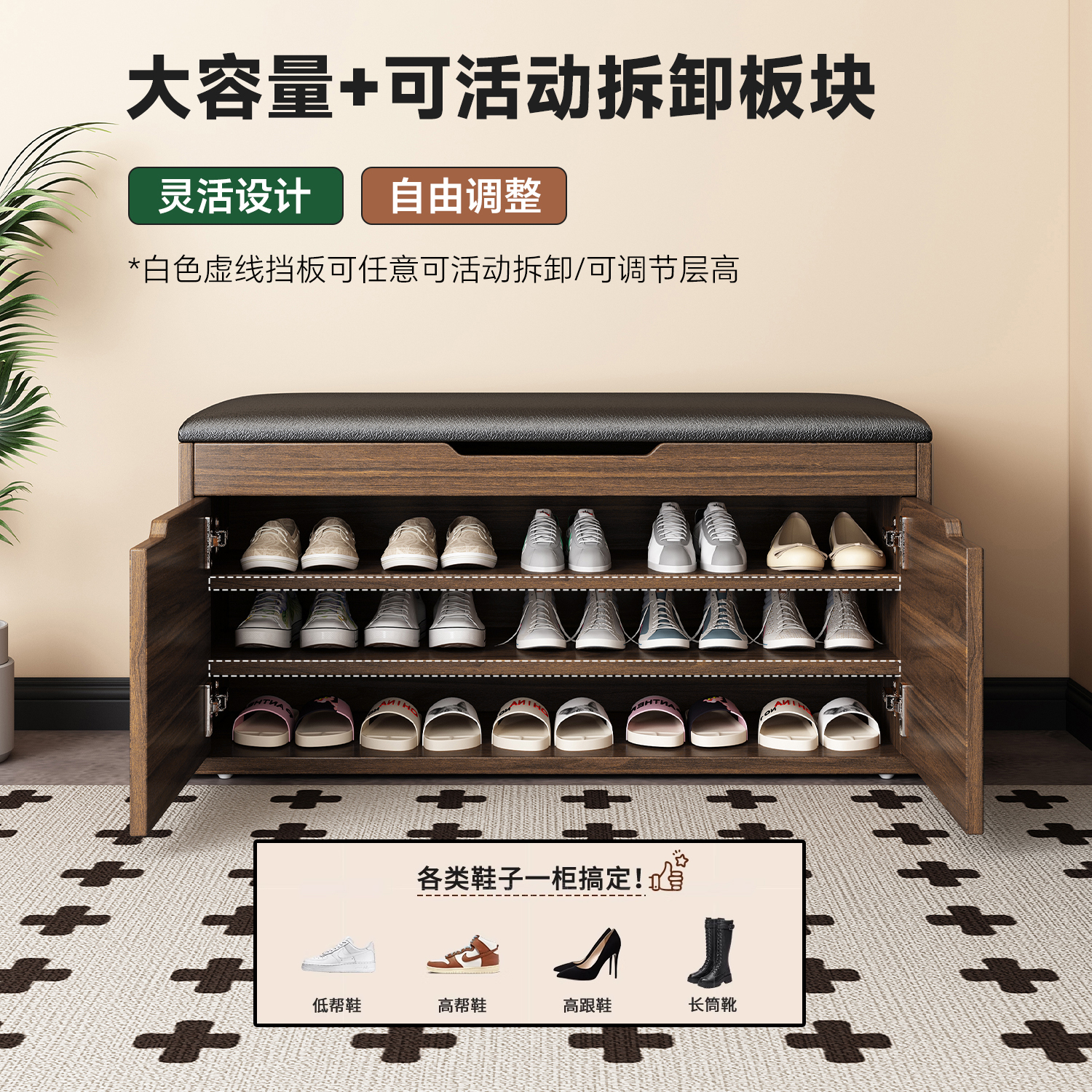鞋 凳可坐式 柜一体进门口黑胡桃木色 入户玄关穿换鞋 实木家用免安装