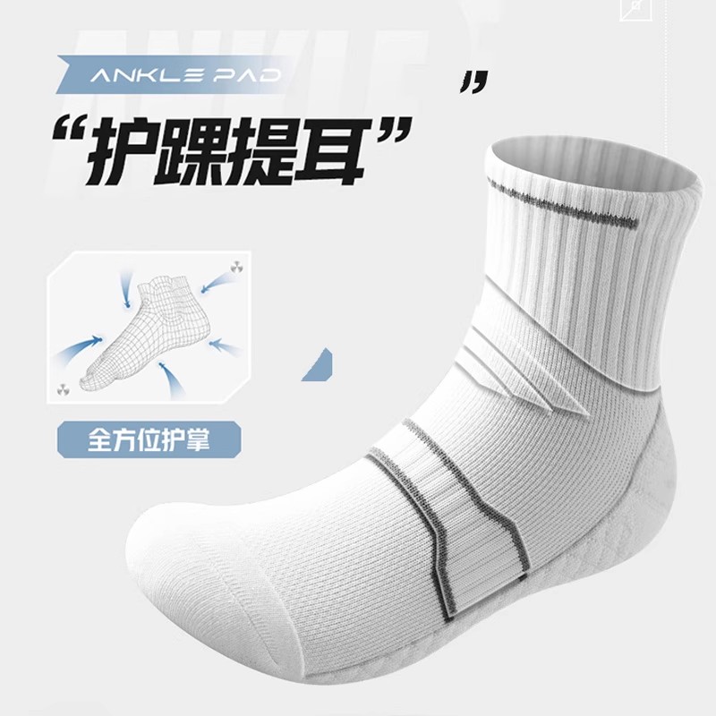 毛巾底运动袜子男款 中筒袜防臭抗起球短袜长袜防滑长筒 纯棉秋季