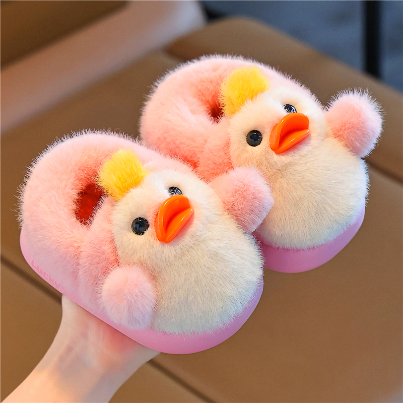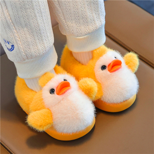 卡通小鸭子软底防滑中小童男孩保暖毛毛绒宝宝棉鞋 儿童冬季 棉拖鞋