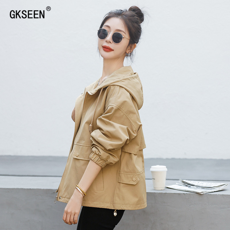 秋冬新款 开衫 修身 收腰上衣早秋穿搭美式 短款 灰色连帽卫衣外套女款