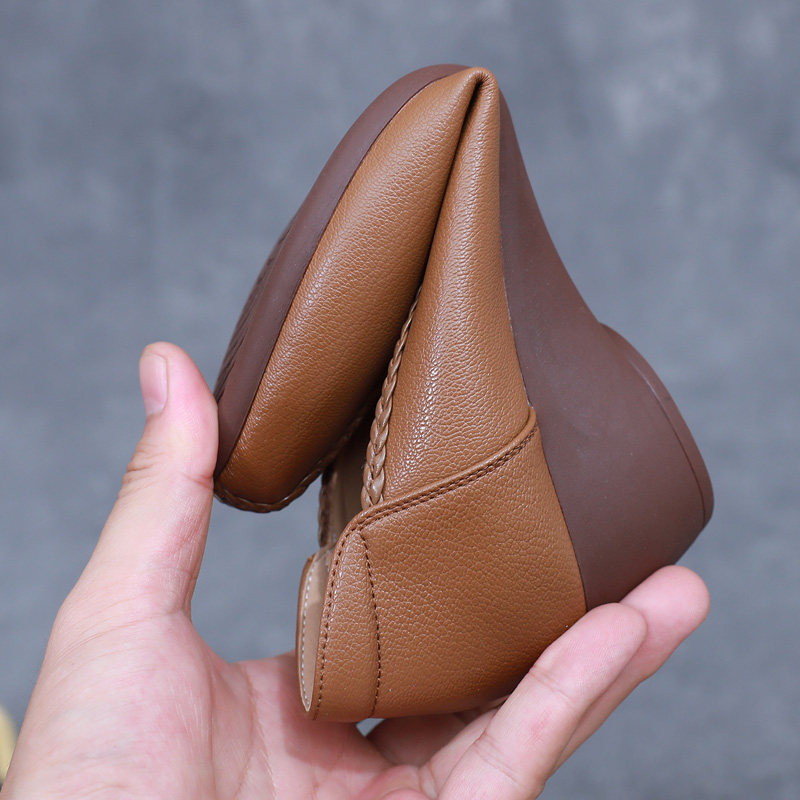 新中式 国风鞋 子坡跟单鞋 复古女鞋 羊皮鞋 春秋款 大码 真皮软底妈妈鞋