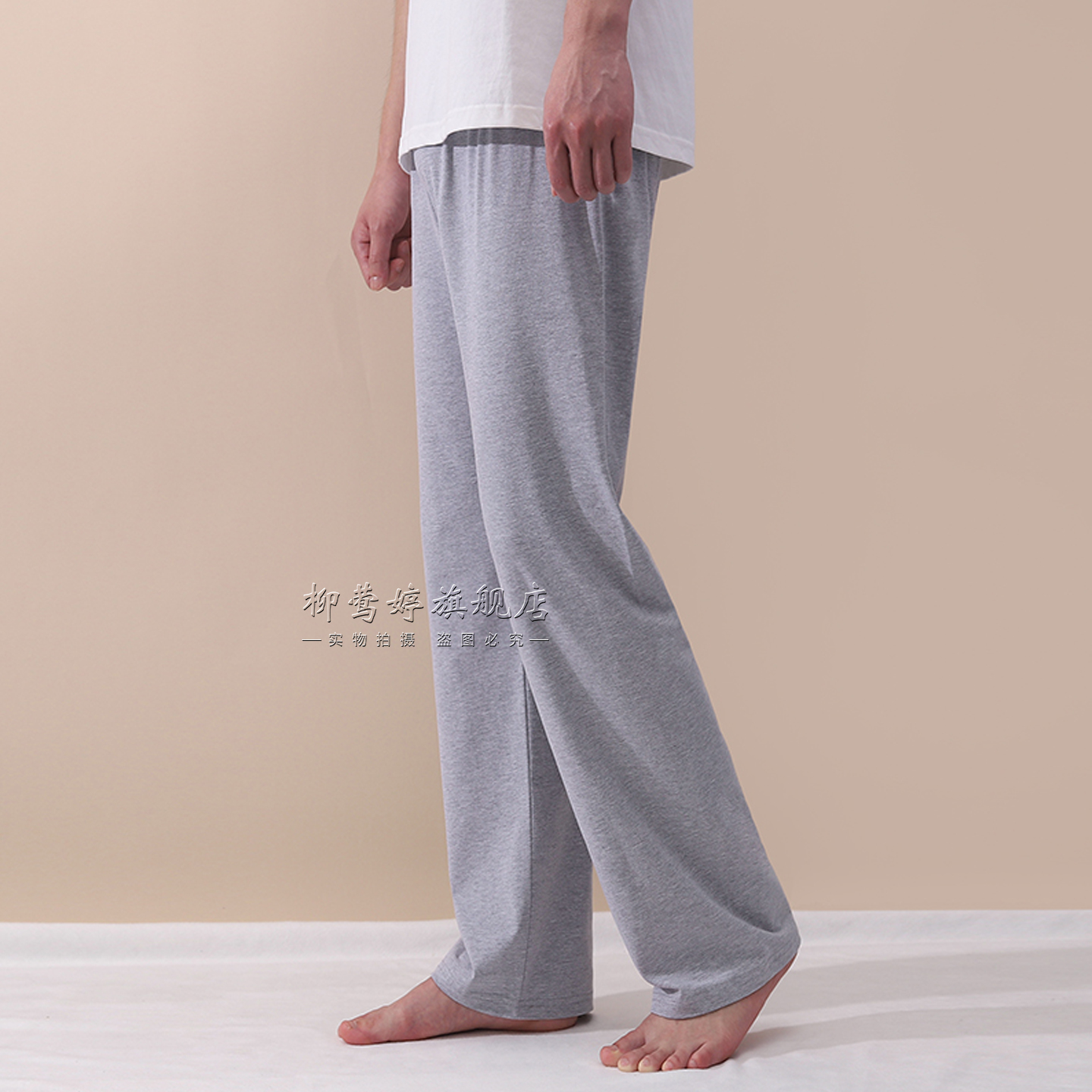 子薄裸睡裤 居家睡裤 老年人无口袋休闲棉质裤 无缝裤 男长裤