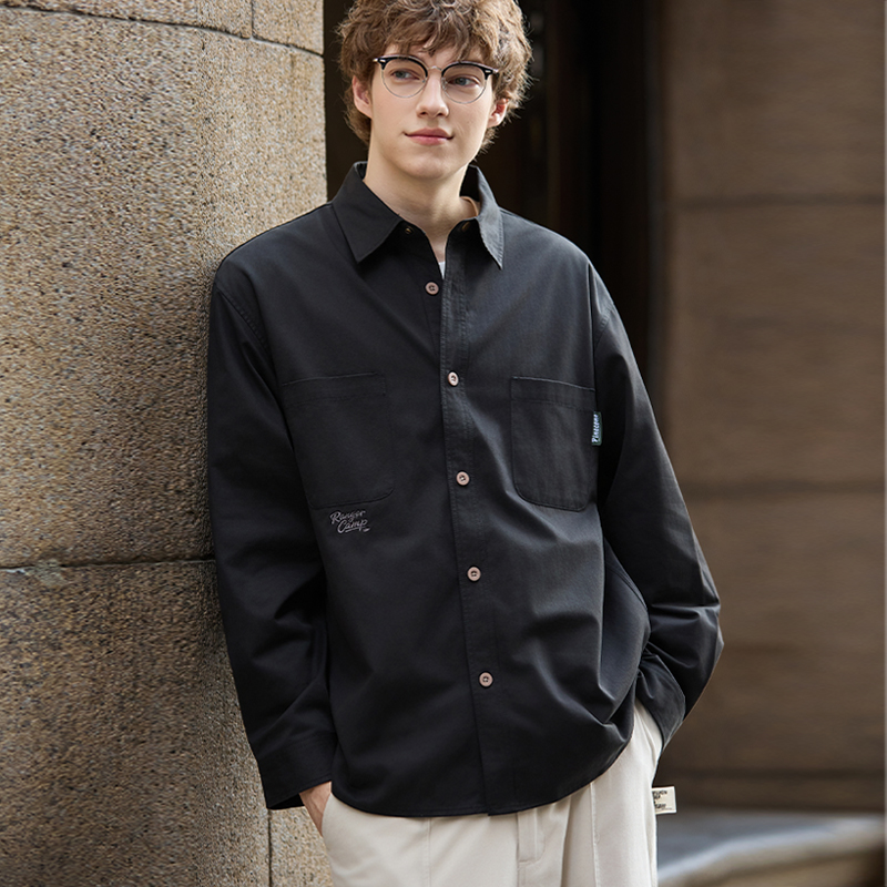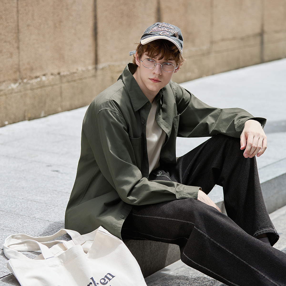 牛仔衬衣男18045803 男洗水单口袋宽松长袖 设计师款 佐丹奴牛仔衬衫