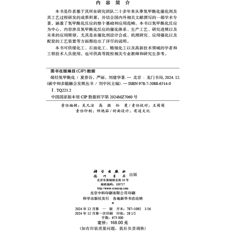 国家重点出版 烯烃氢甲酰化 著 现货速发 物出版 社 严丽 科学出版 夏春谷 9787508865140 刘建华 规划项目 十四五