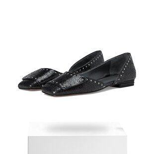 Sarto ZOGG659 Tracy平底鞋 黑色皮革方趾拖鞋 黑色 女式 自营Franco
