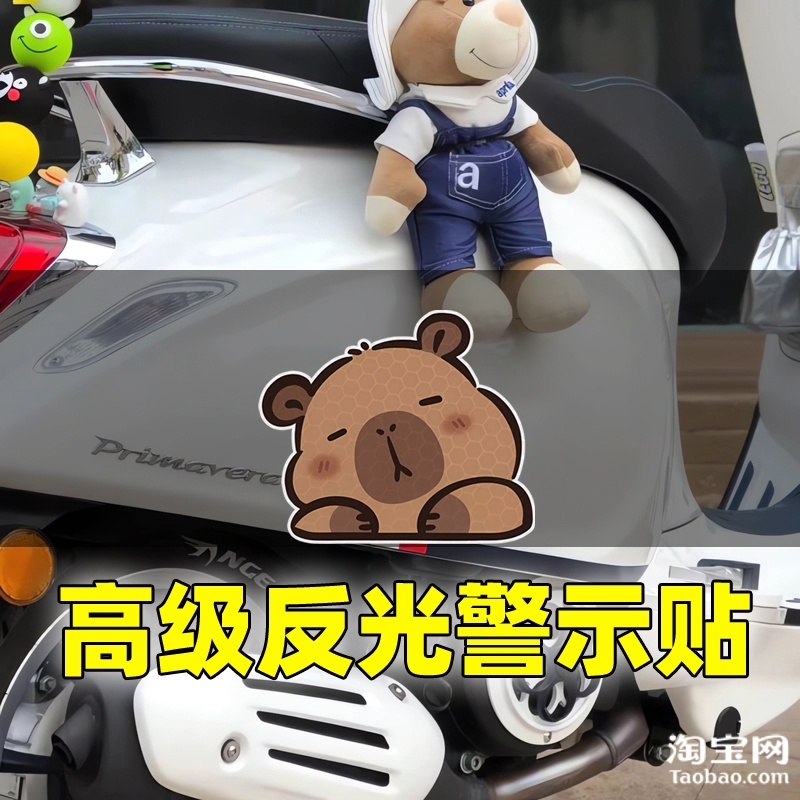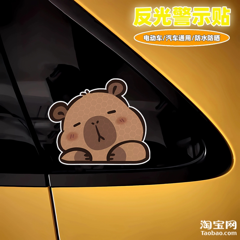 雅迪新日九号电动车装 饰反光贴纸摩托头盔汽车卡皮巴拉贴划痕遮挡