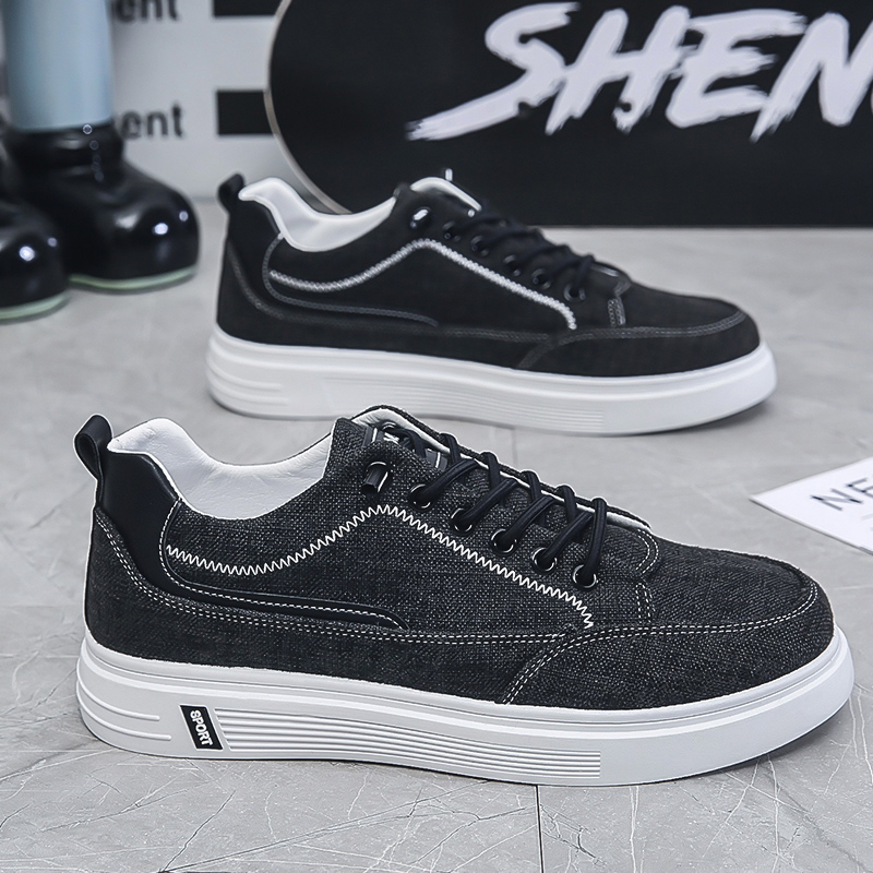 学生休闲运动百搭情侣板鞋 环球厚底黑色帆布鞋 新款 2025秋季 男 男款