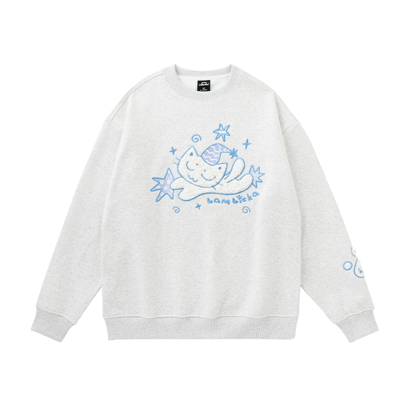 LAMLICKA潮牌灰色长袖 圆领卫衣男秋冬加厚休闲可爱宽松套头上衣女