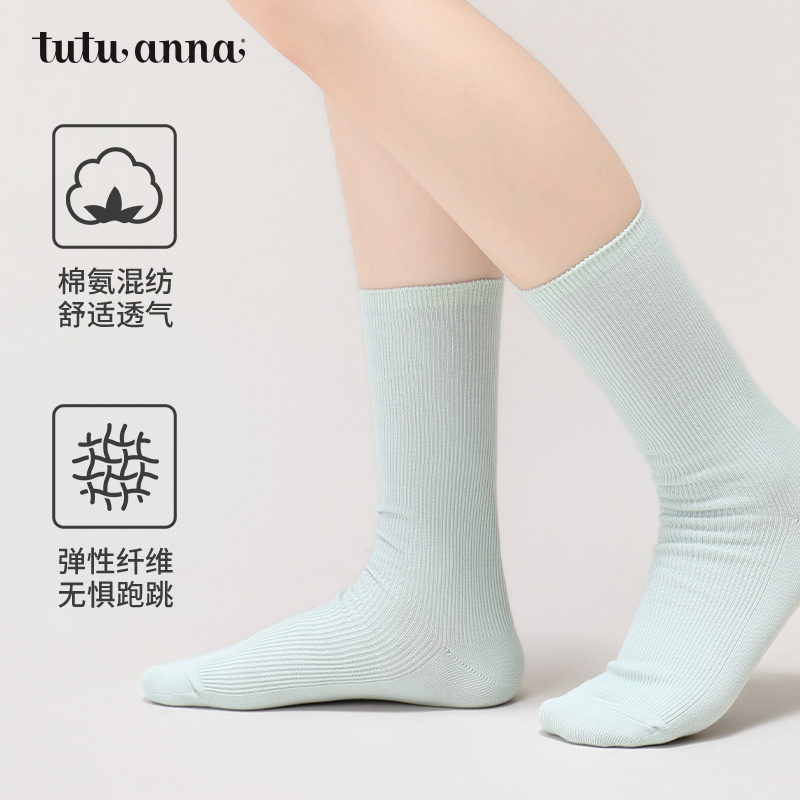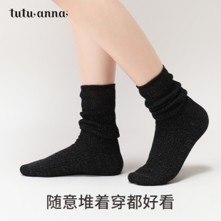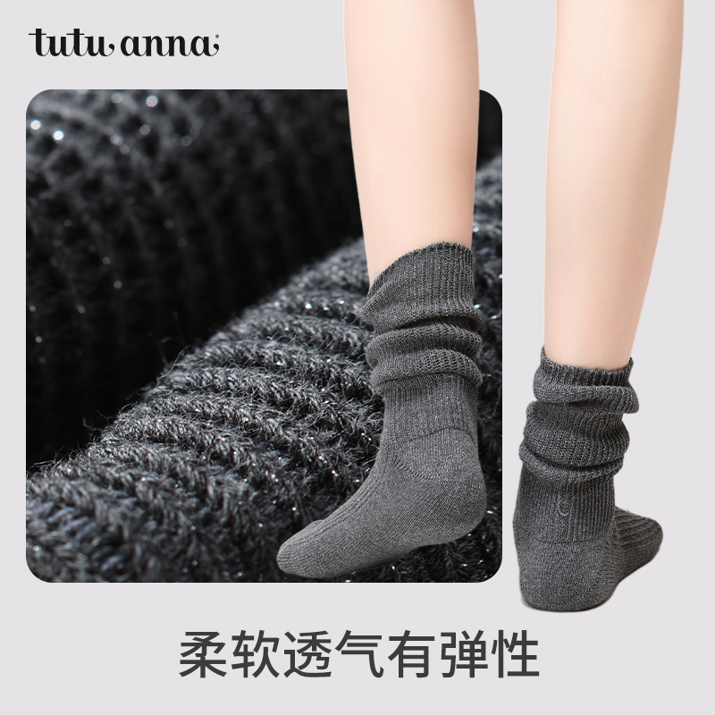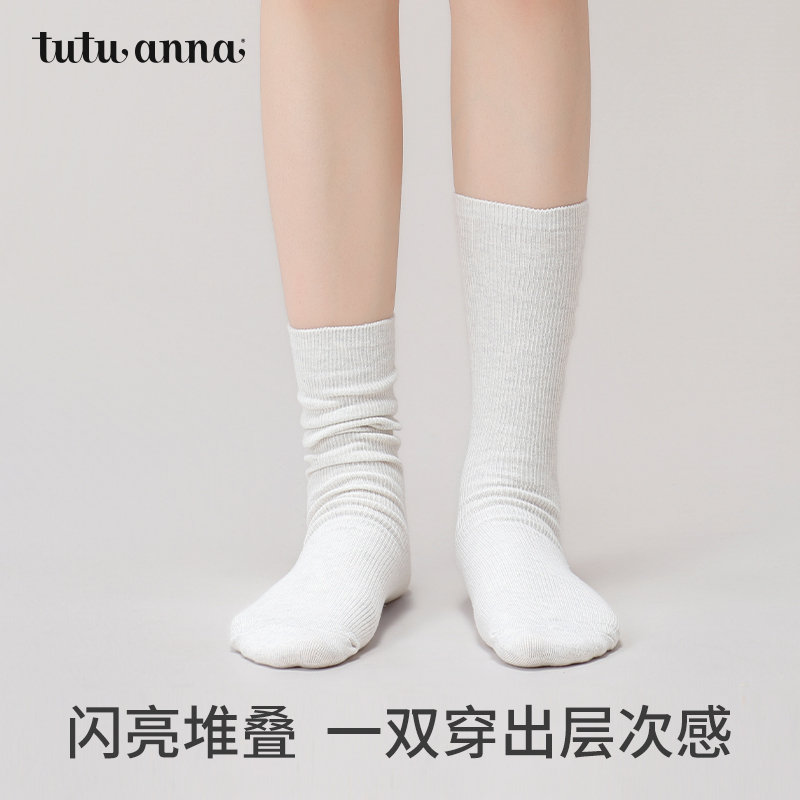 tutuanna秋冬女士堆堆袜 棉质透气纯色基本百搭女士无骨中筒袜