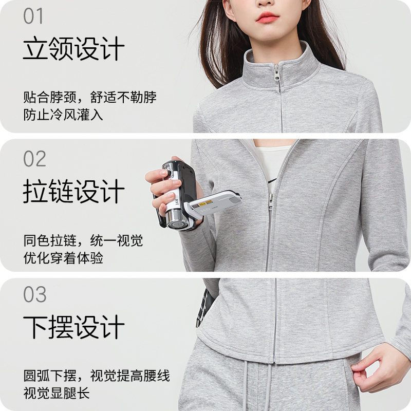 收腰开衫 立领修身 运动休闲上衣 秋季 NOB真维斯灰色外套女2025新款