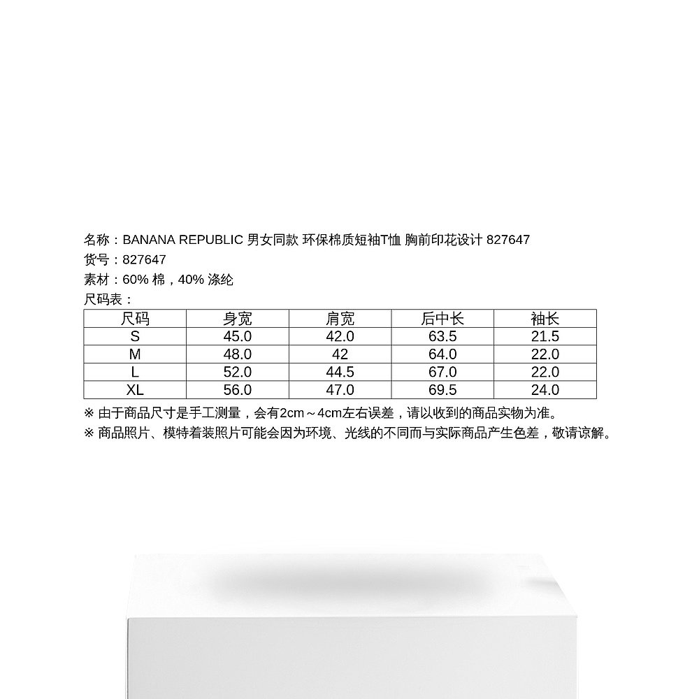 日本直邮BANANA T恤 REPUBLIC 环保棉质短袖 胸前 男女同款 1h可退