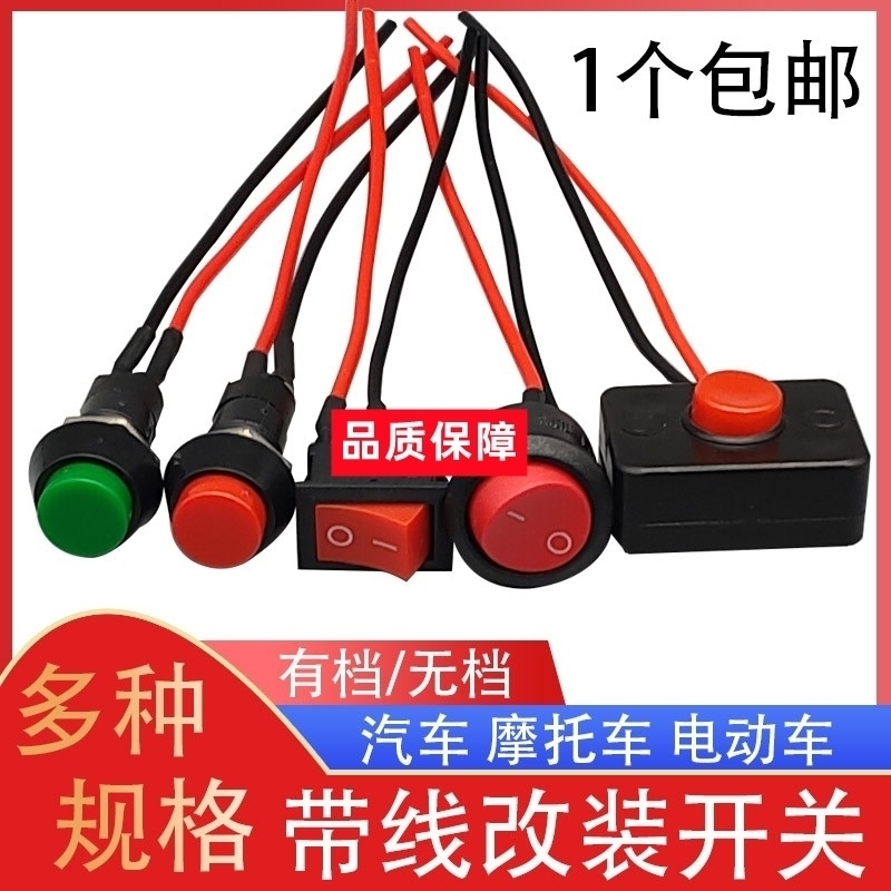 汽车按钮小开关改装 摩托车电动车喇叭开关日行车灯开关12V24V单控