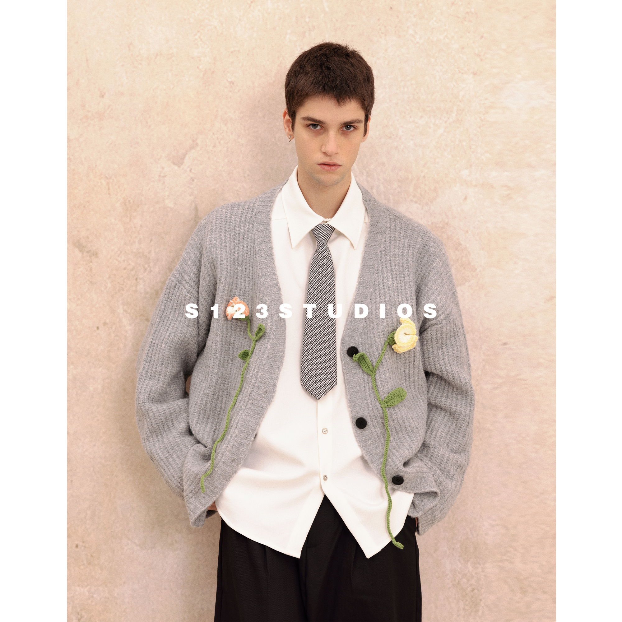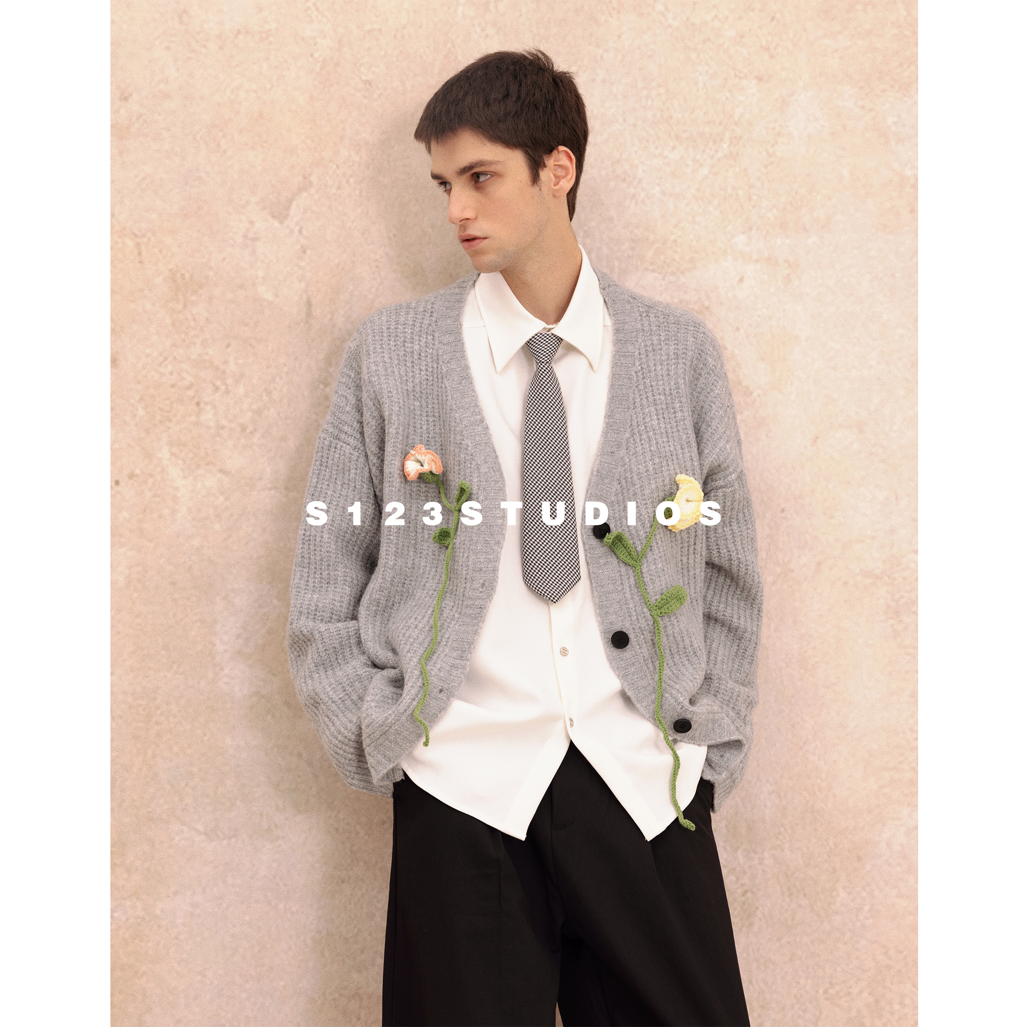 奶噗噗IP联名 新款 紫涵V领短款 秋季 休闲宽松毛衣外套 针织开衫