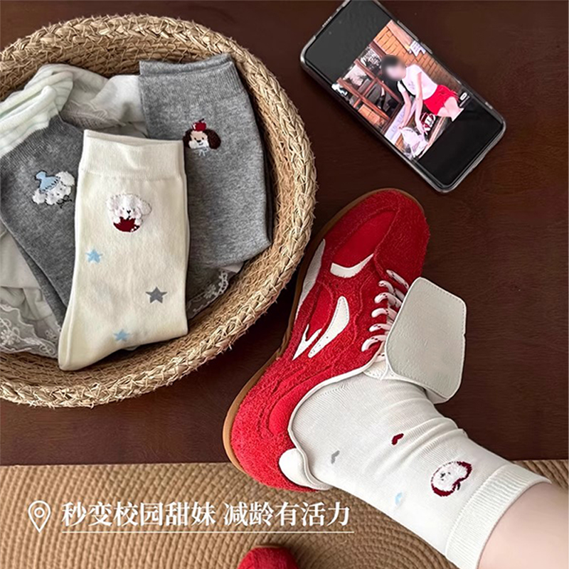 帕兰朵袜子女中筒袜春秋季 棉袜吸汗透气纯色百搭堆堆袜防臭长筒袜