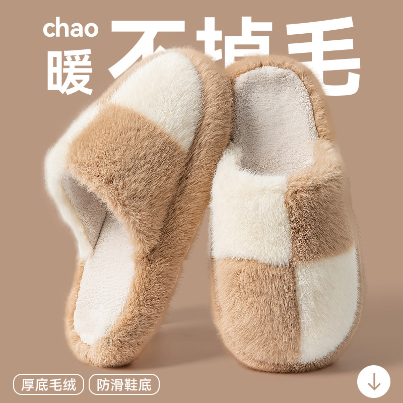 秋冬季 2025新款 室内家居加绒保暖厚底踩屎感棉拖男 男款 防滑棉拖鞋