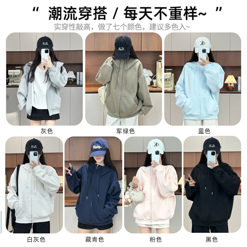 休闲开衫 灰色外套女早秋季 卫衣美式 宽松拉链连帽爆款 上衣 2025新款