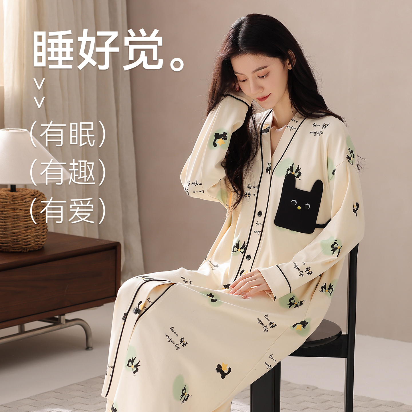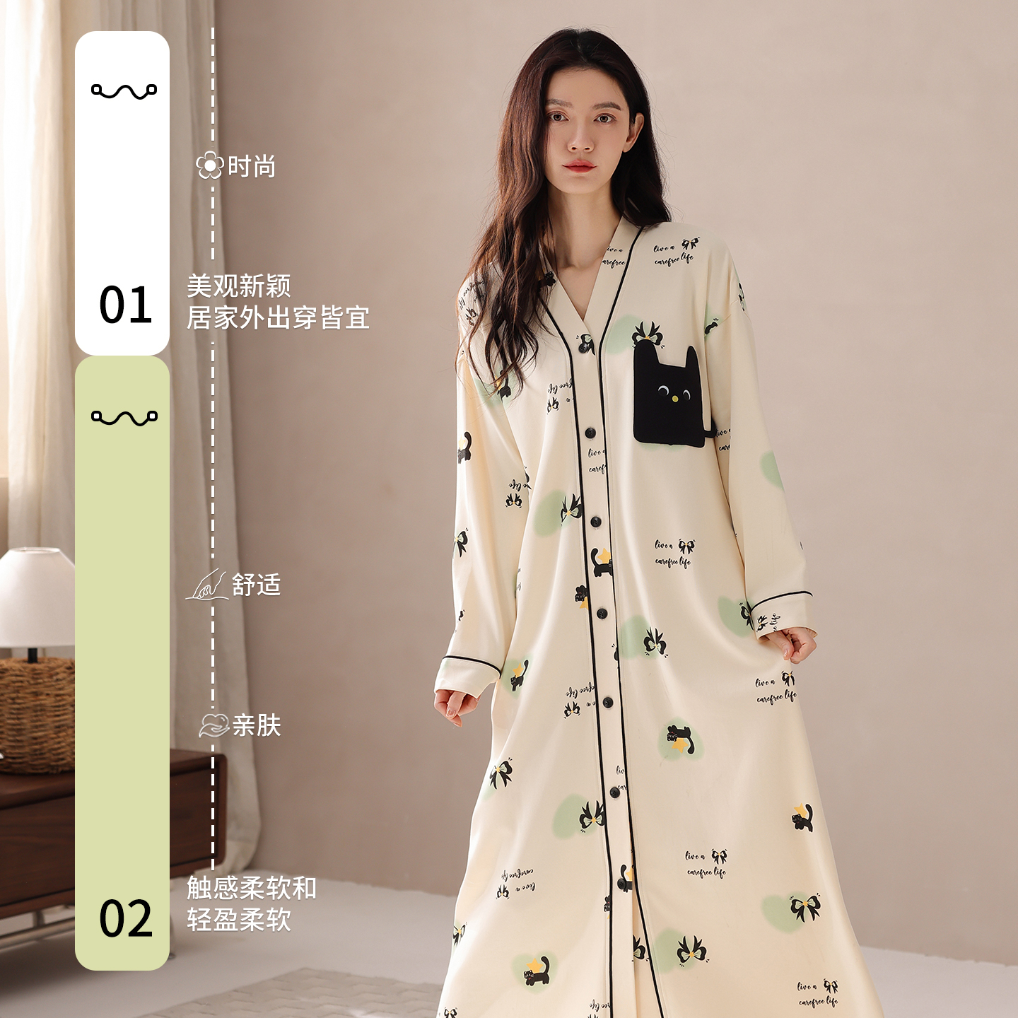 睡衣秋卡通连衣裙家居服可外穿 长袖 都市丽人2025新款 纯棉睡裙女款