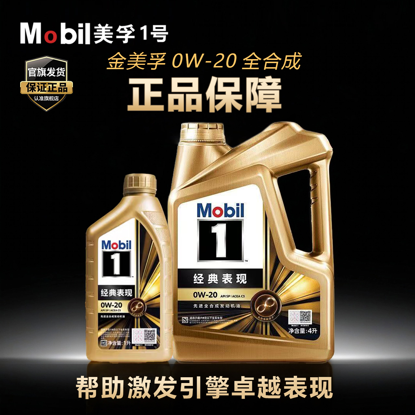 Mobil美孚1号全合成0W 表现金美孚润滑油SP汽车发动机油4L 20经典