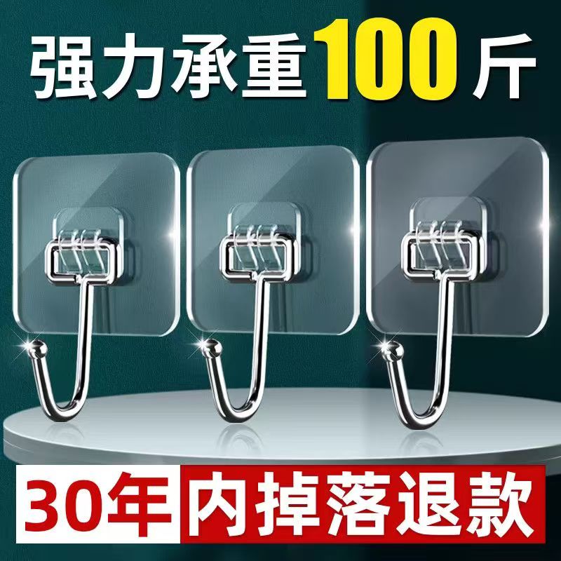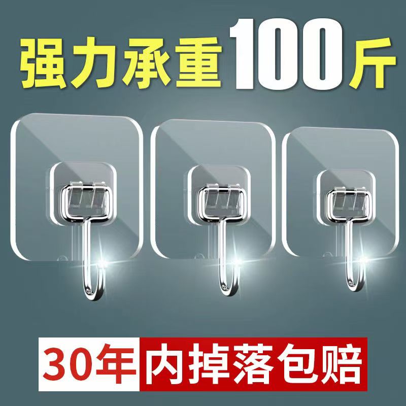 挂钩强力粘胶免打孔透明无痕门后挂墙上承重强力厨房贴墙粘钩粘贴