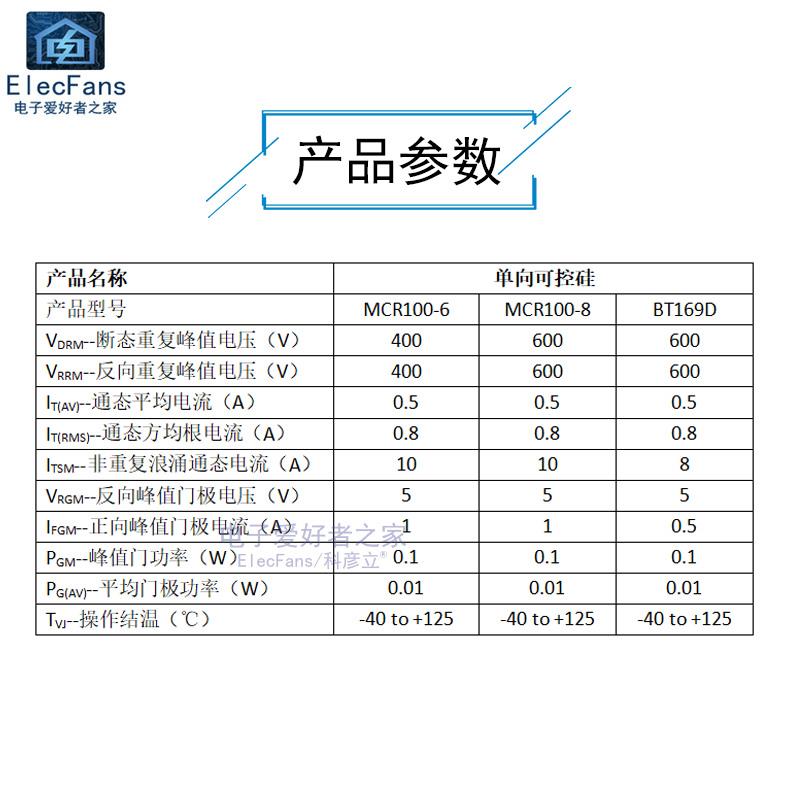 400V 92单向可控硅 MCR100 10个 晶闸管