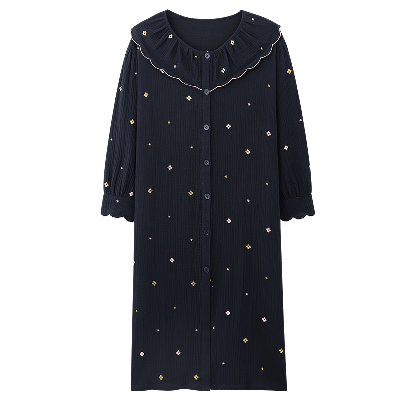 猫人亲肤女士睡裙2025春秋新长袖 连衣裙家居服睡衣 卡通甜美中长款