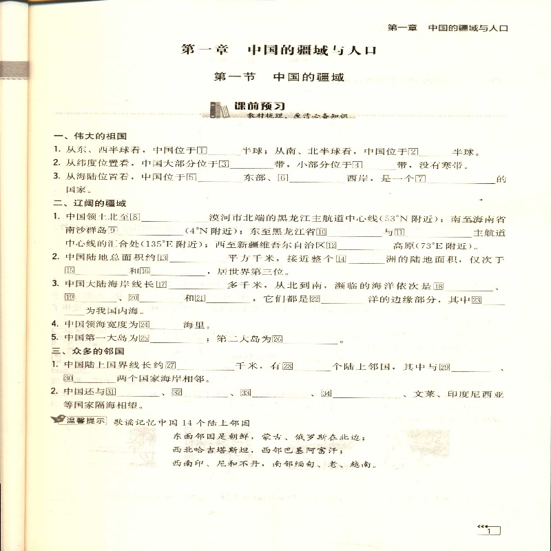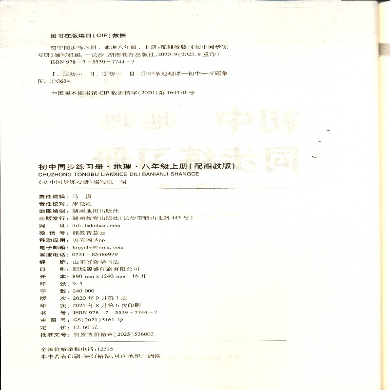 2025六三制地理8八年级上册初中同步练习册湖南教育出版 社配湘教版