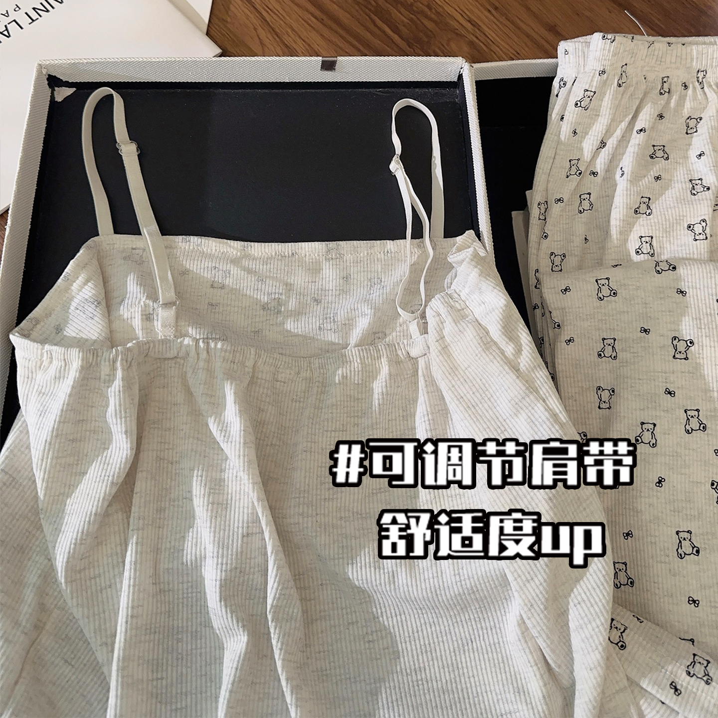 可外穿秋冬款 松山棉店小暖羊罗纹家居服套装 睡衣女带胸垫情侣长袖