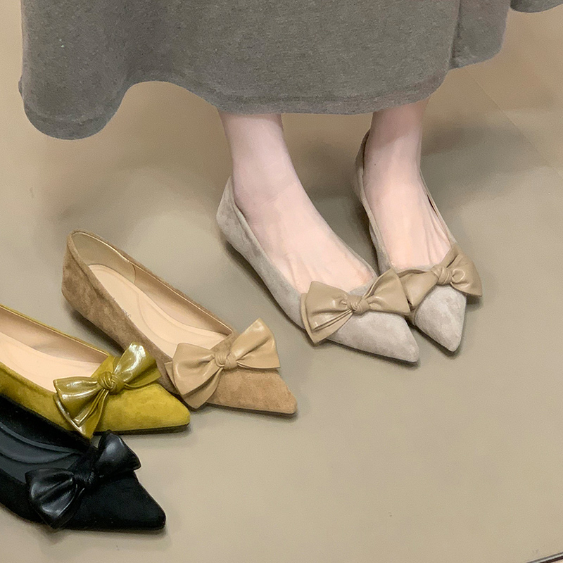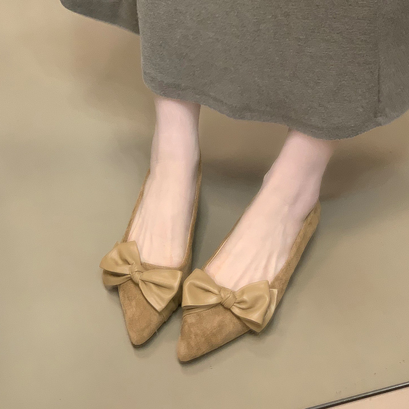 one 百搭通勤女鞋 尖头绒面低跟气质单鞋 新款 蝴蝶结2025秋季 ocean