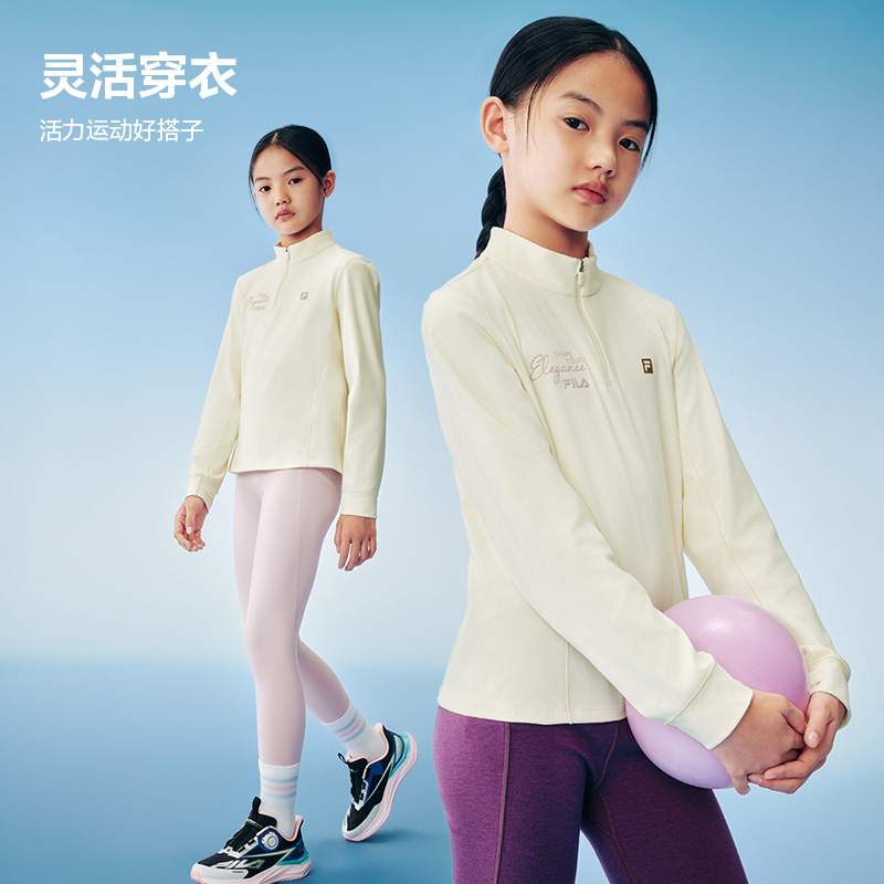 男女童打底衫 新款 青少年运动速干衣 2025秋季 FILA斐乐儿童T恤长袖