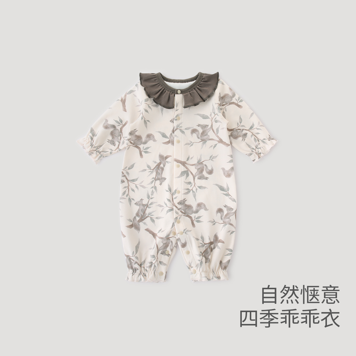 女宝宝连体衣春秋季 爬服儿童衣服 纯棉哈衣婴幼儿公主风花边领秋装
