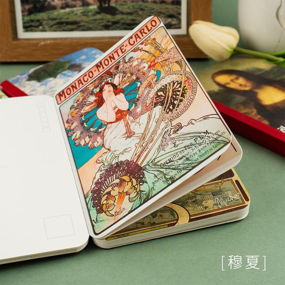 穆夏明信片 明信片ins风贺卡油画书穆夏画册画集插画集插画书籍世界名画作品集硬卡创意贺卡星空向日葵连衣裙叔叔艺术双面印刷