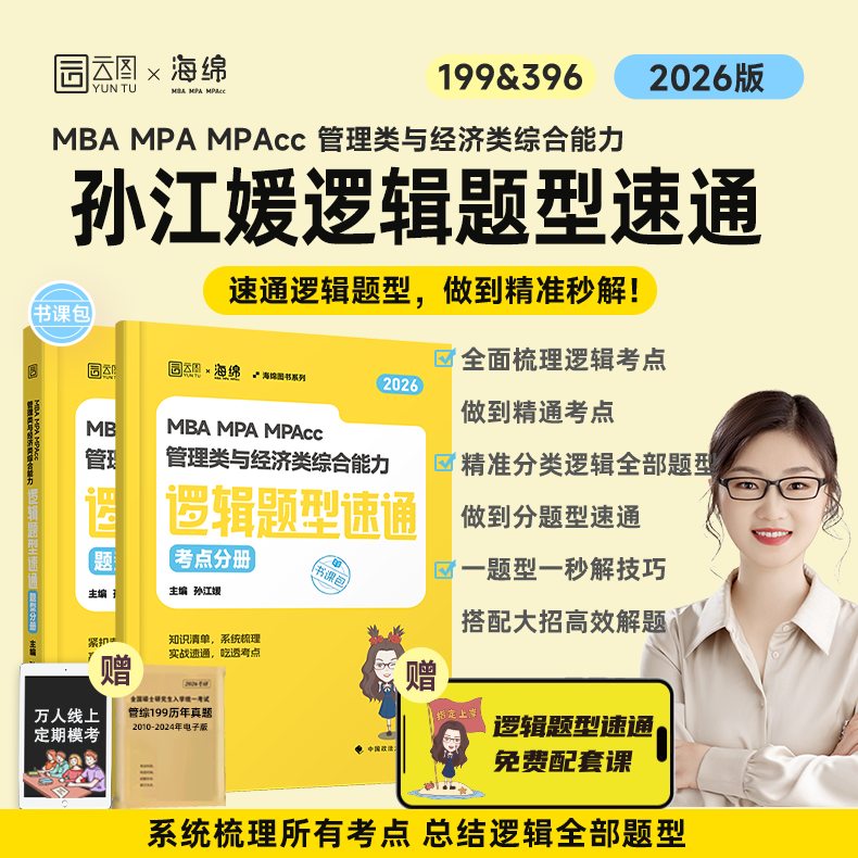 2026考研管理类经济类联考孙江媛逻辑题型速通真题库十八招网课书课包MBAMPAcc199管综396经综搭张伟男数学张乃心写作李焕逻辑72技